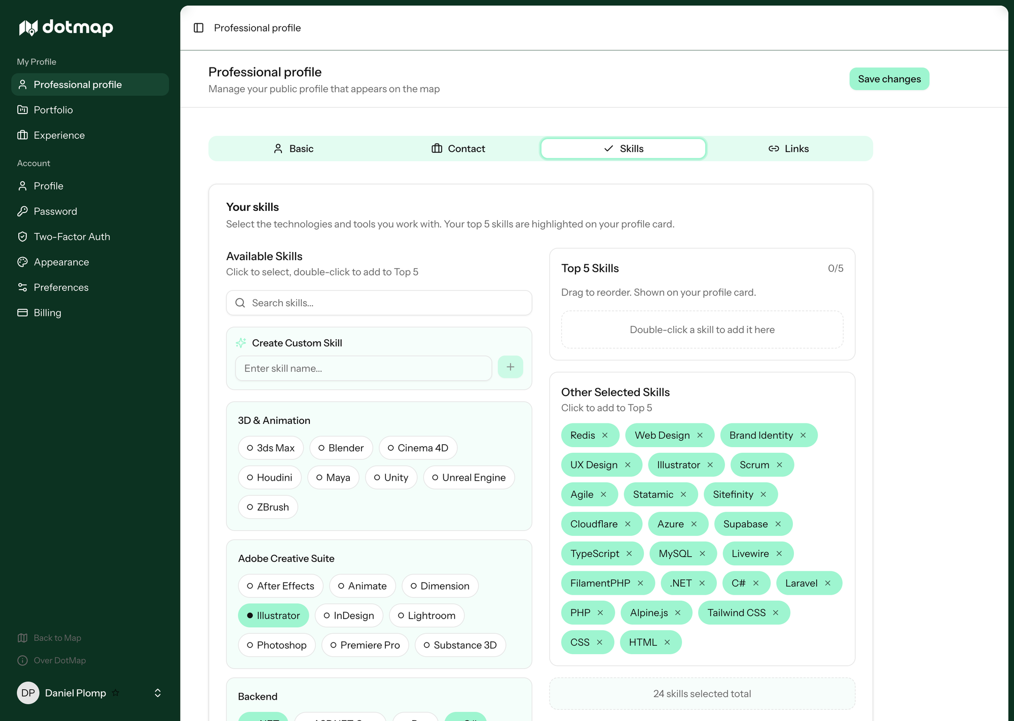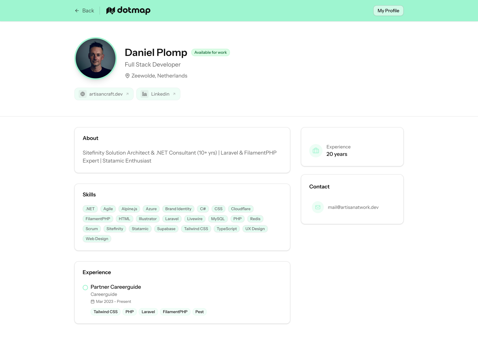 Instead of one big pool of professionals, Dotmap now supports multiple verticals. Tech. Creative. And more to come. Each vertical has: