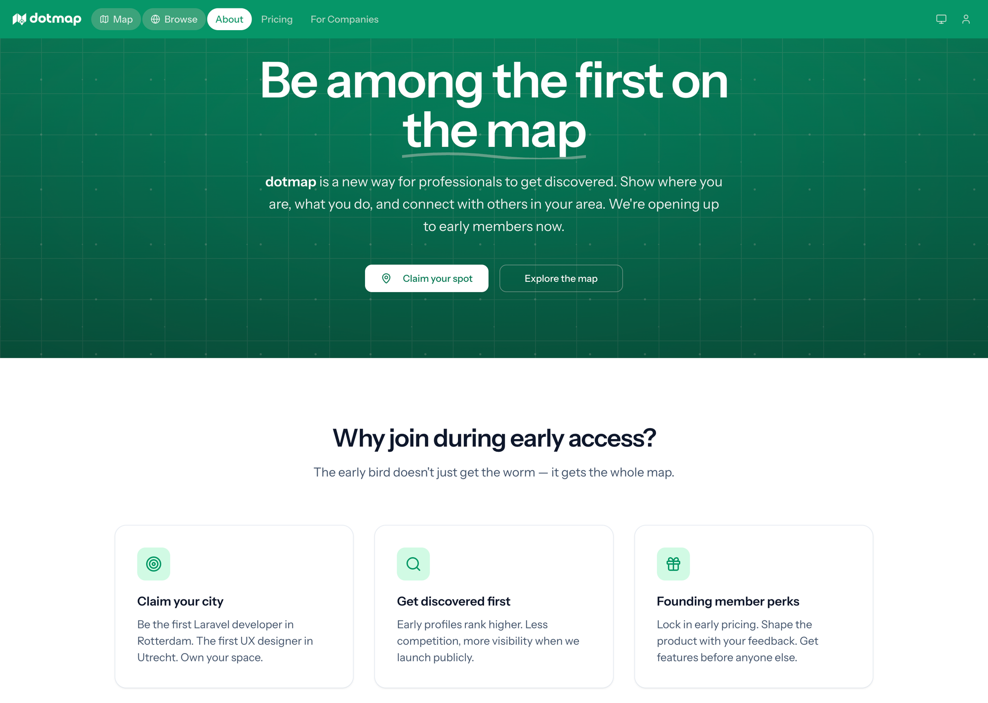 When I started Dotmap, the idea was simple: put developers on a map. Find talent near you. That's it.