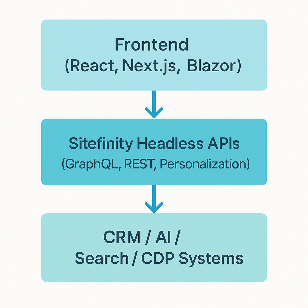 This separation allows organizations to evolve each part of their stack independently while still relying on Sitefinity as a stable, centralized content and experience source.